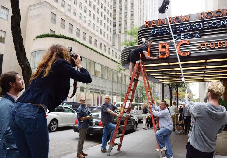 Matthews shoots Sarah Silverman dusting the NBC sign, October 2014.