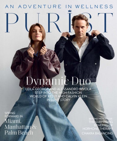 When I first met Alessandro Nivola, we were in our 20s and he was starring in a play at the Roundabout Theatre Company in New York City. The breadth of his talent shined offstage as well. He was a raconteur of the exciting moments in an actor’s life, playing out scenes with John Travolta or Helen Mirren, all the while strumming his guitar and breaking into a Radiohead melody. “Sandro,” as we called him, was the bright future of stage and screen who has since shown his depth of talent. It’s no wonder he was the perfect choice to play Calvin Klein, and a standout no less, in the popular series Love Story When my new friend, the glorious actress Leila George, told me she was taking on the role of Kelly Klein, I knew immediately that I had to pair them on the cover for this special issue—two iconic actors as two fashion icons from the ’90s zeitgeist. Some of my favorite new healing discoveries are also in this spring issue of Purist Read about TMS, transcranial magnetic stimulation, for myriad mental health issues, cravings, weight loss and perimenopause brain fog. Take a closer look at hormone therapy, which can start as soon as 10 years before menopause begins—it’s not just used as a peri-tomenopause symptom alleviator, but can help regenerate the brain, bones and the whole body. The transformative power of narrative medicine occurs through storytelling,