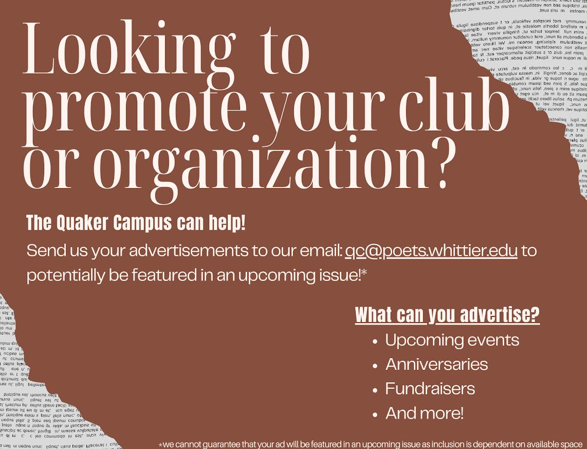 The Quaker Campus does not change material posted on online articles once they have been published in the paper — with the exception of an error being found. Only then will a correction be made to the online version. The Quaker Campus is a publication of Whittier College. Columns and Signed editorials do not necessarily reflect the opinions of Whittier College or its affiliates.