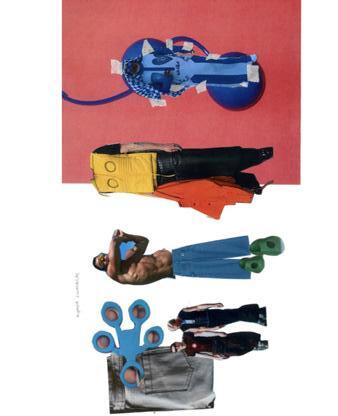 ALL HIS PIECES ARE DONE WITH FOUND PRINT MATERIALS.