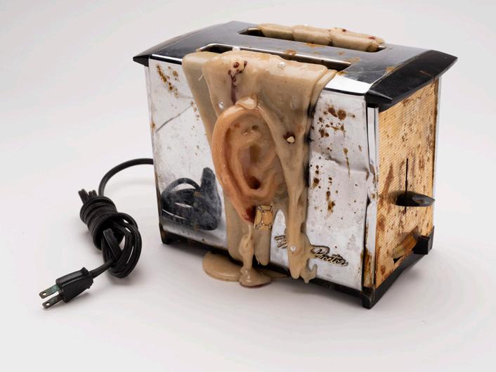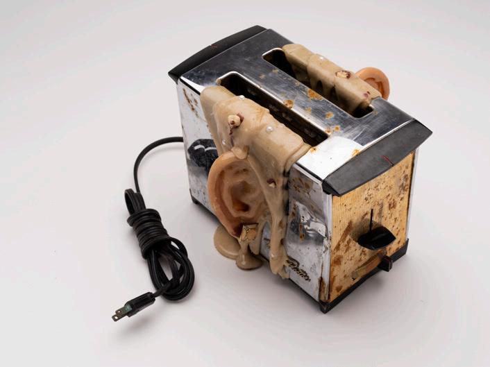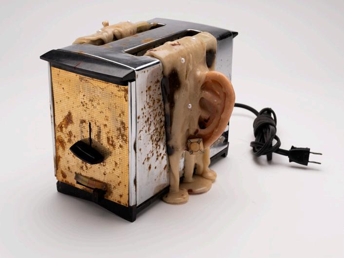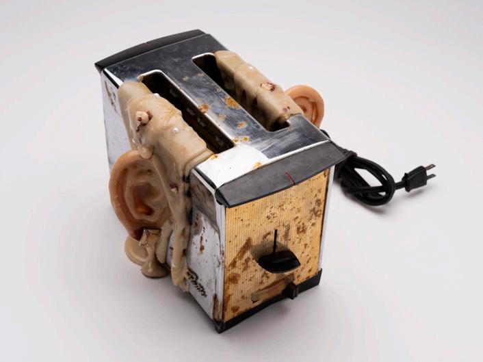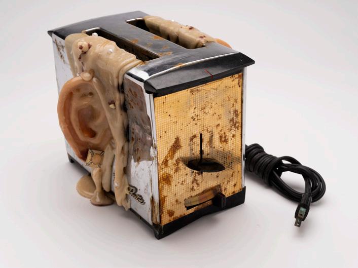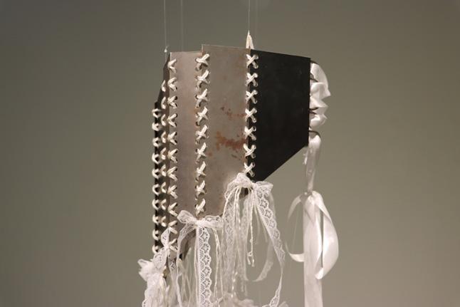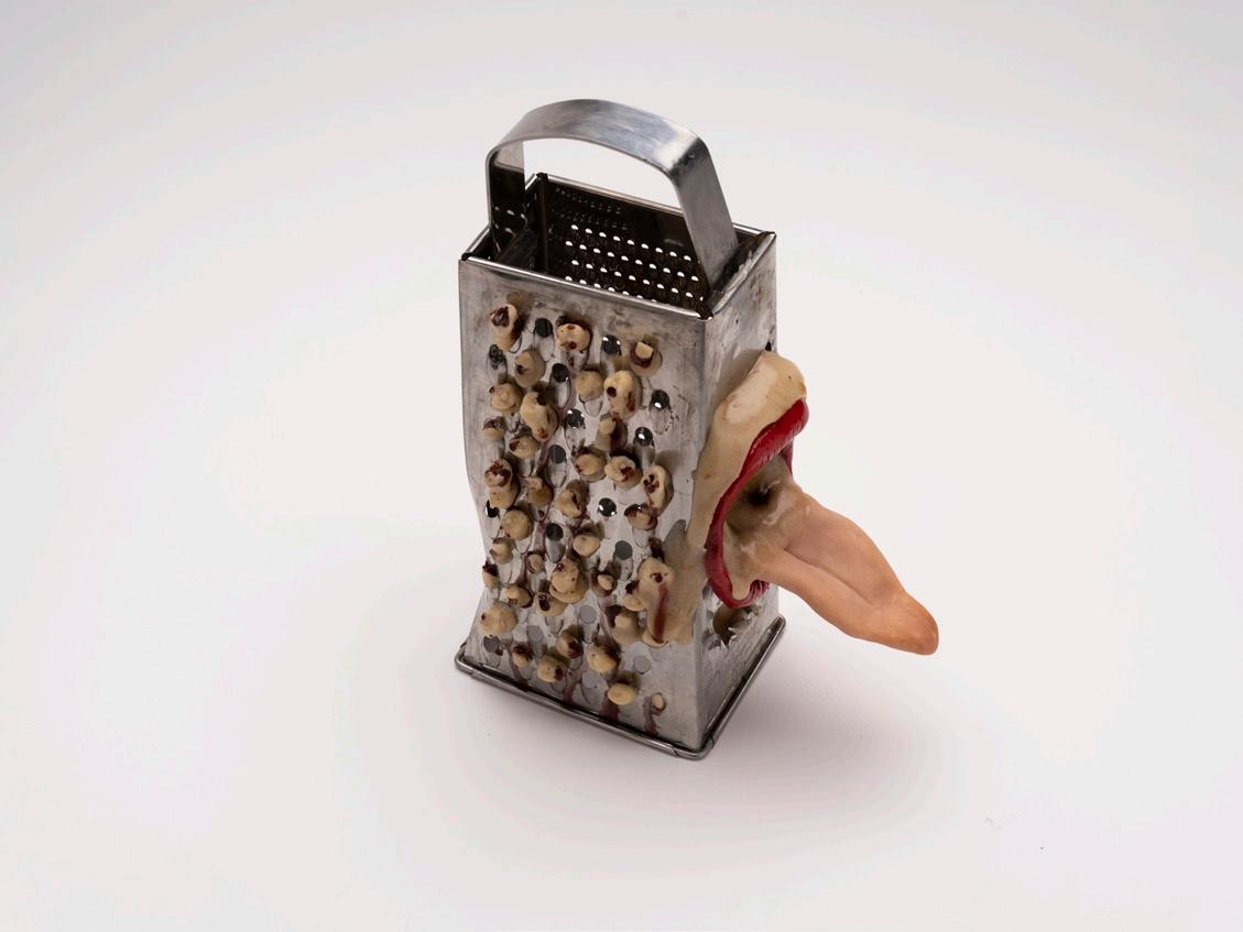 Through deliberately distressing the pieces: molding, burning, breaking, and rusting, the aesthetic horror of the piece turns the ‘becoming’ of the piece