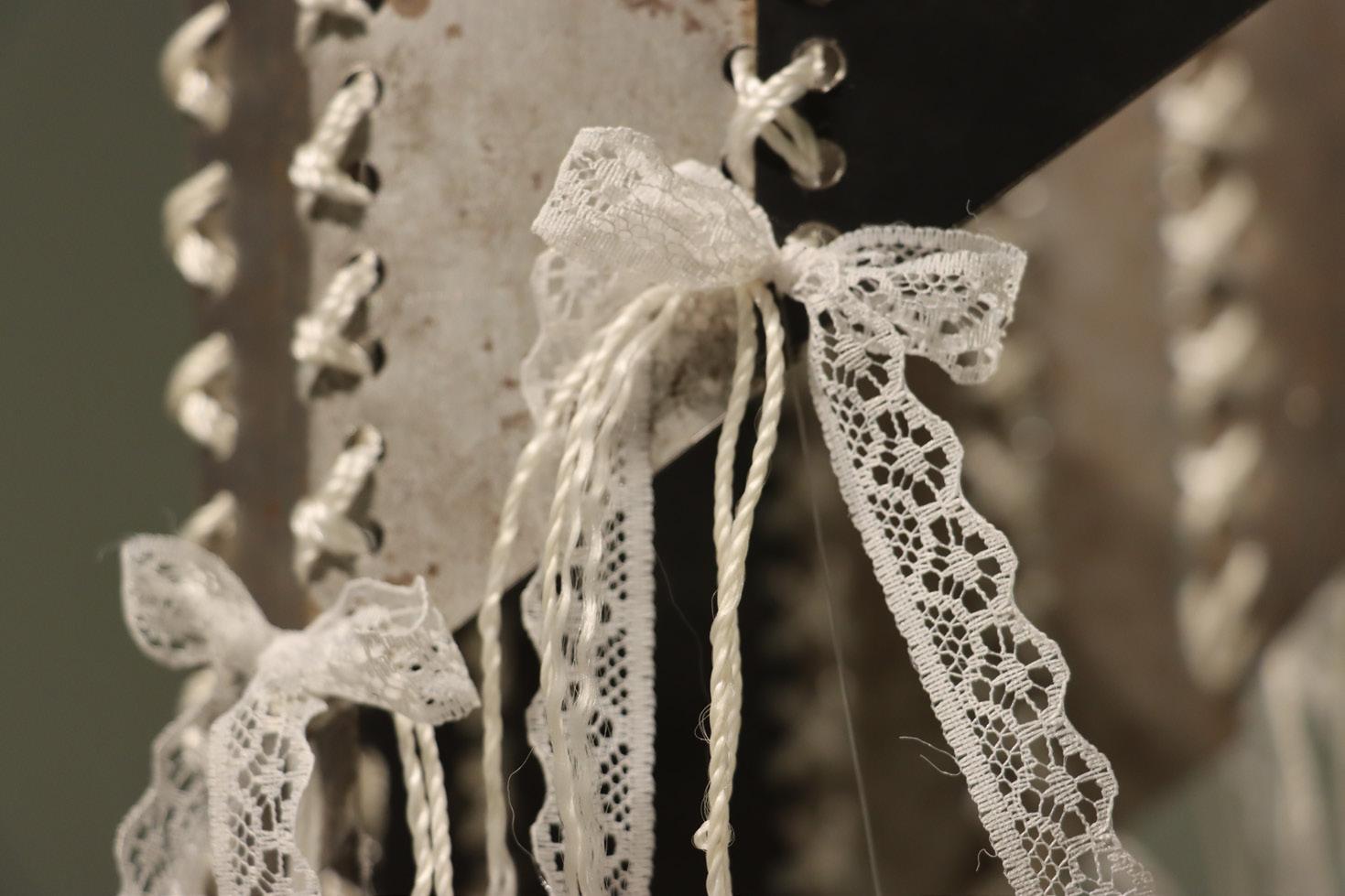 I originally started using found objects in my pieces as a way to “use things up”, in response to my family’s history of disordered consumption. Still cathartic, it has simultaneously grown into an anti-consumerist practice, while creating pieces that allow me to delve into my own struggle with the notion of ‘home’, ‘family’, ‘domesticity’ and ‘womanhood’ which have been ongoing irregular experiences throughout my life.
