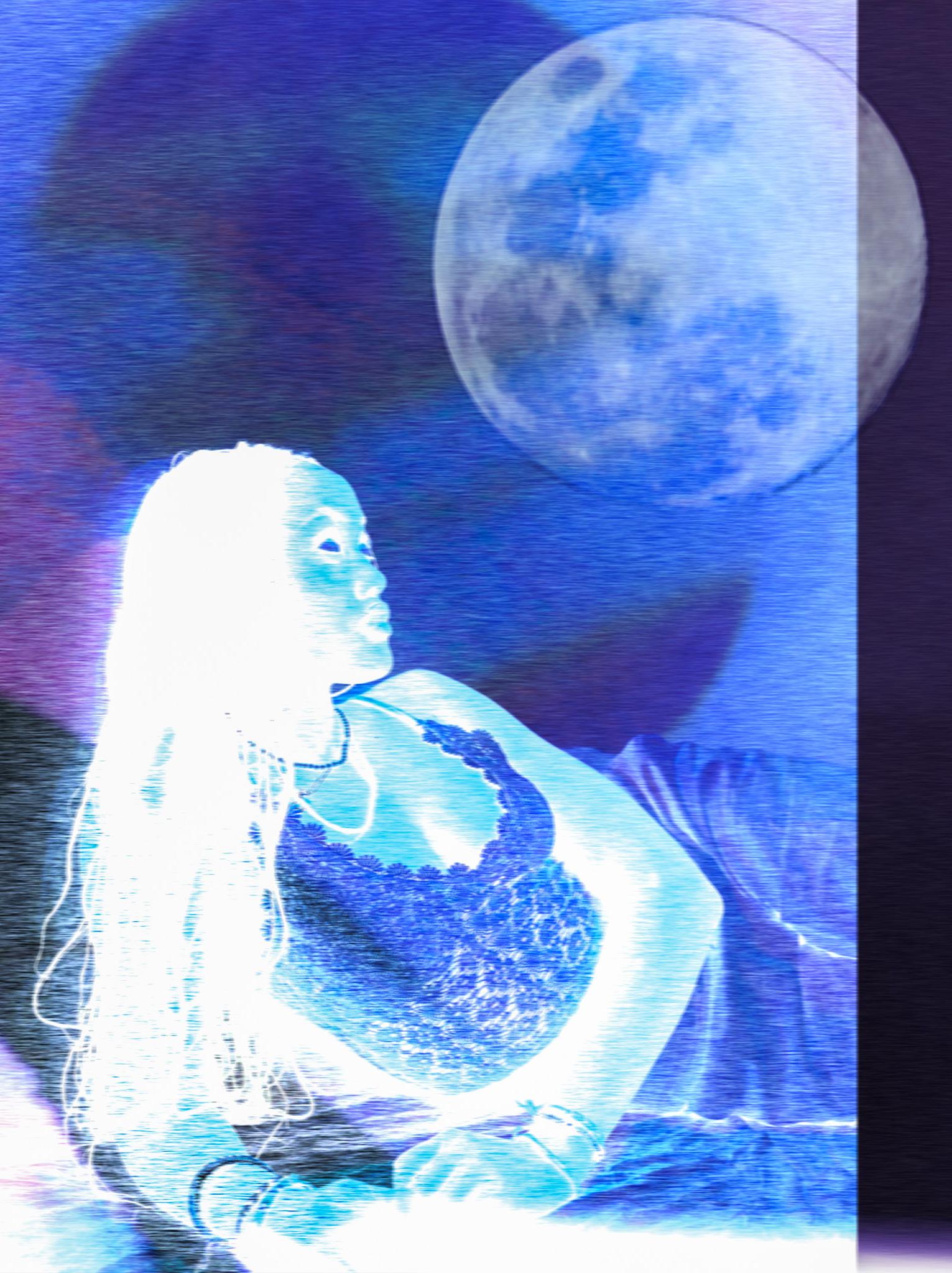 My artistic practice is intimate and deeply personal. My photography aims to capture the rawness of the human condition, synthesizing emotion, individuality, and self-expression. I am particularly fascinated by the marriage of lensbased media and digital art, continuously exploring the ways in which narrative photography can be transformed with overlays of texture and visual effects. I desire not to be limited to a singular medium, but rather to experiment across various genres and forms of artistic expression. My photographic series, “Moonbeams”, delivers a glimpse into a metaphysical sanctuary; an alternate universe where the powerful energy of the moon stirs intense disorder and unrest. When the moon aligns with the sun, a full moon forms – a phase where the energy of the planet runs highest, opening a