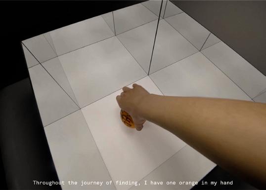 In this experiment, Sisyphus represents humanity. I selected a random orange and named it HOLIC to symbolize the achievement of the task—our object of desire. I then posed a scenario: the purpose in life is to find HOLIC, but once found, HOLIC disappears. Would you then allow the orange in your hand to become HOLIC? This experiment revealed a new perspective: Sisyphus does not seek completion in his task, mirroring our tendency to avoid fulfilling our desires. HOLIC must remain unattainable. This is where HOLIC collides with cataclysm—not merely as destruction, but as the rupture of meaning. The moment HOLIC disappears, it fractures the illusion of fulfillment, leaving only the pursuit itself. The oranges, tangible yet elusive, symbolize Sisyphus’s rolling rock, while the mirrors reflect infinite HOLICs, creating a metaphor for the relationship between humans and desire: