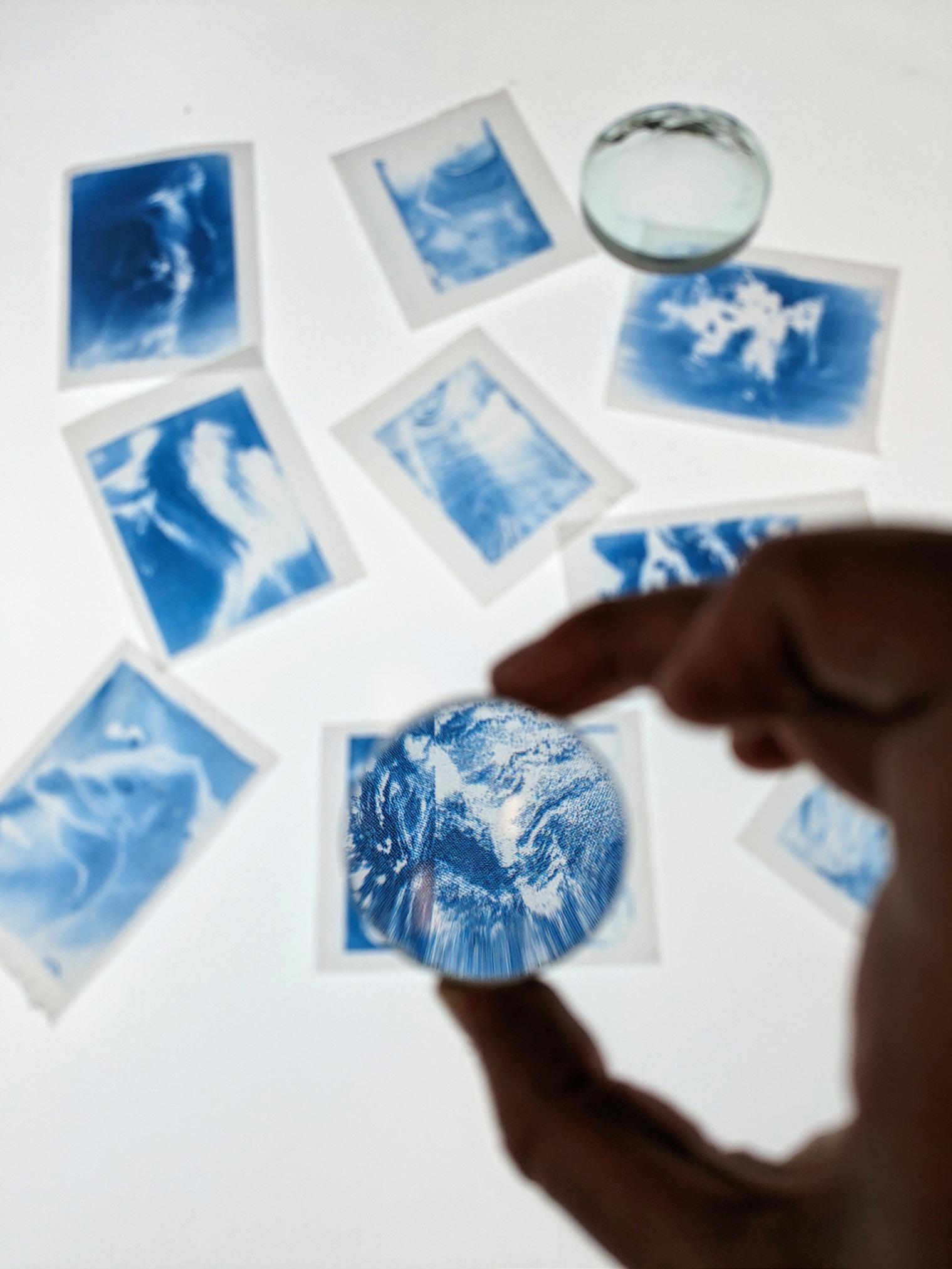 A few of these are a combination of chemigrams and photograms. The chemigrams act as backgrounds projected onto the miniatures.
