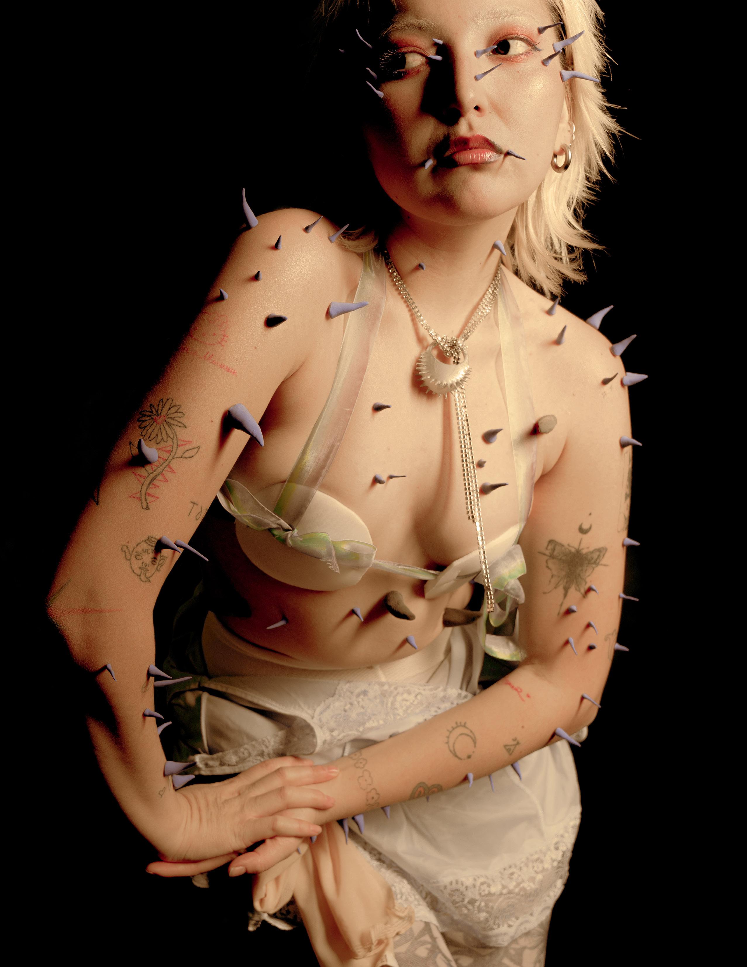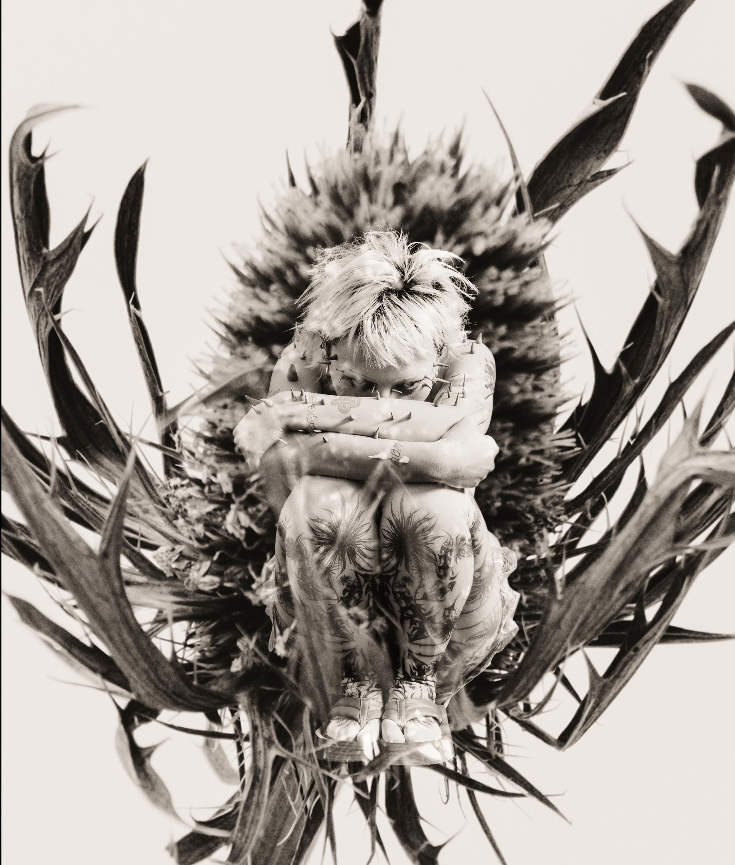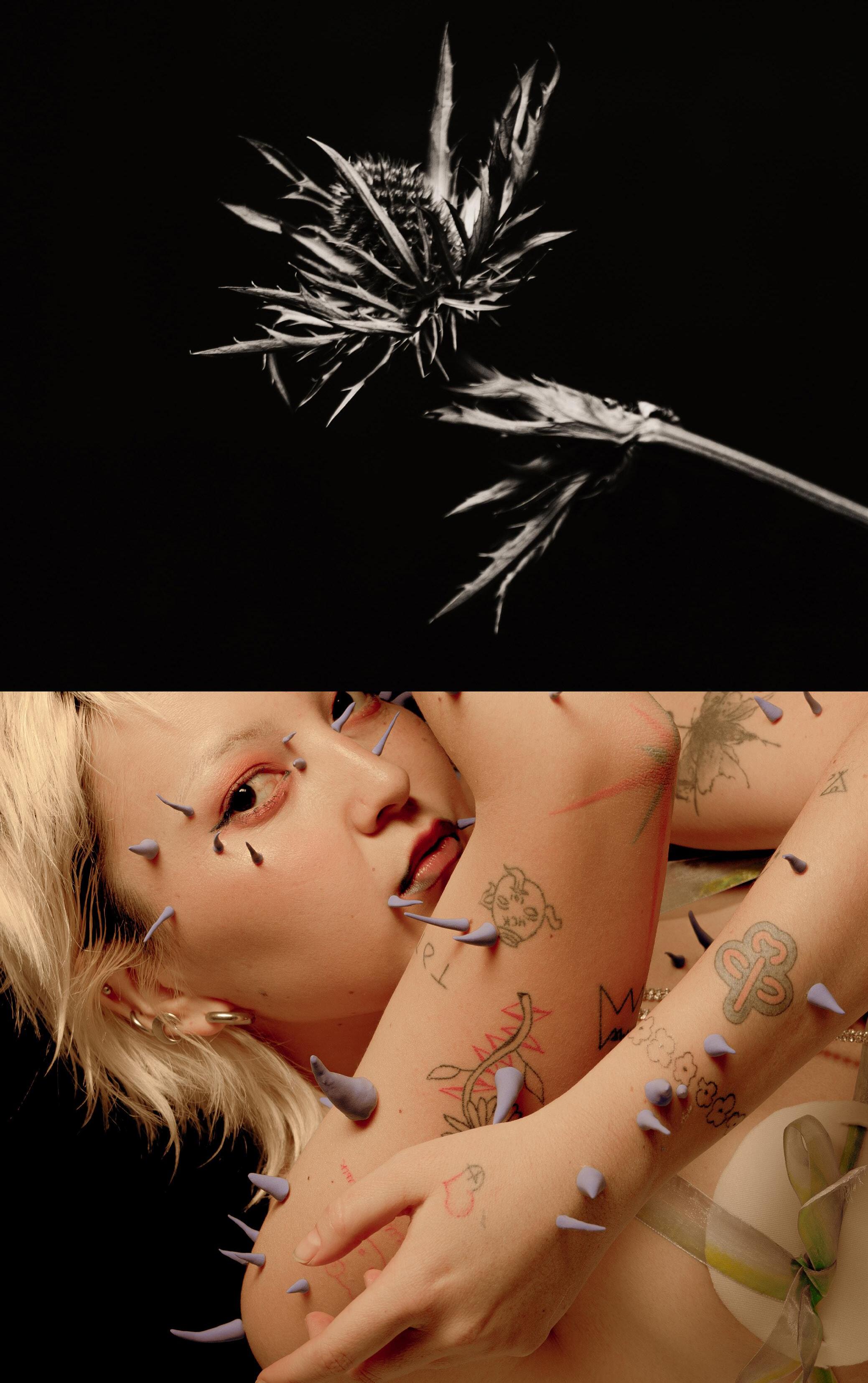 In a photo project called Tikenek, we wanted to show the image of a girl through a strong but delicate floral image. Tikenek means thorns. Many girls have to grow thorns to feel like themselves.
