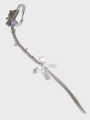 This accessory holds the essence of that angelic presence—subtle hues blending seamlessly into white-blonde strands, the serene beauty of roses, and the mystical glow of celestial elements.