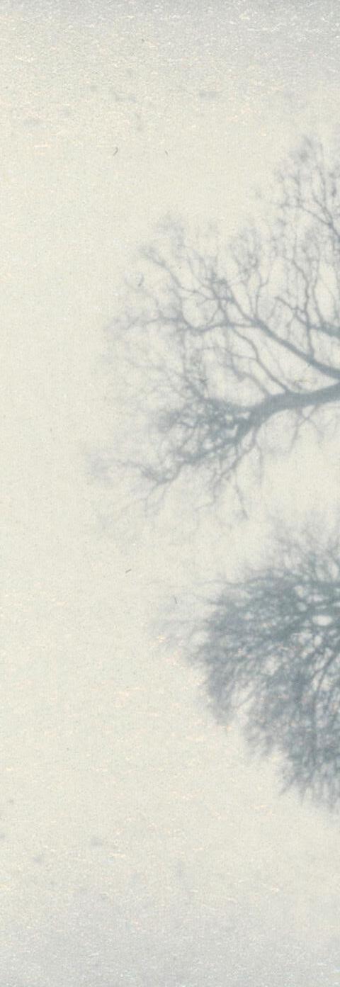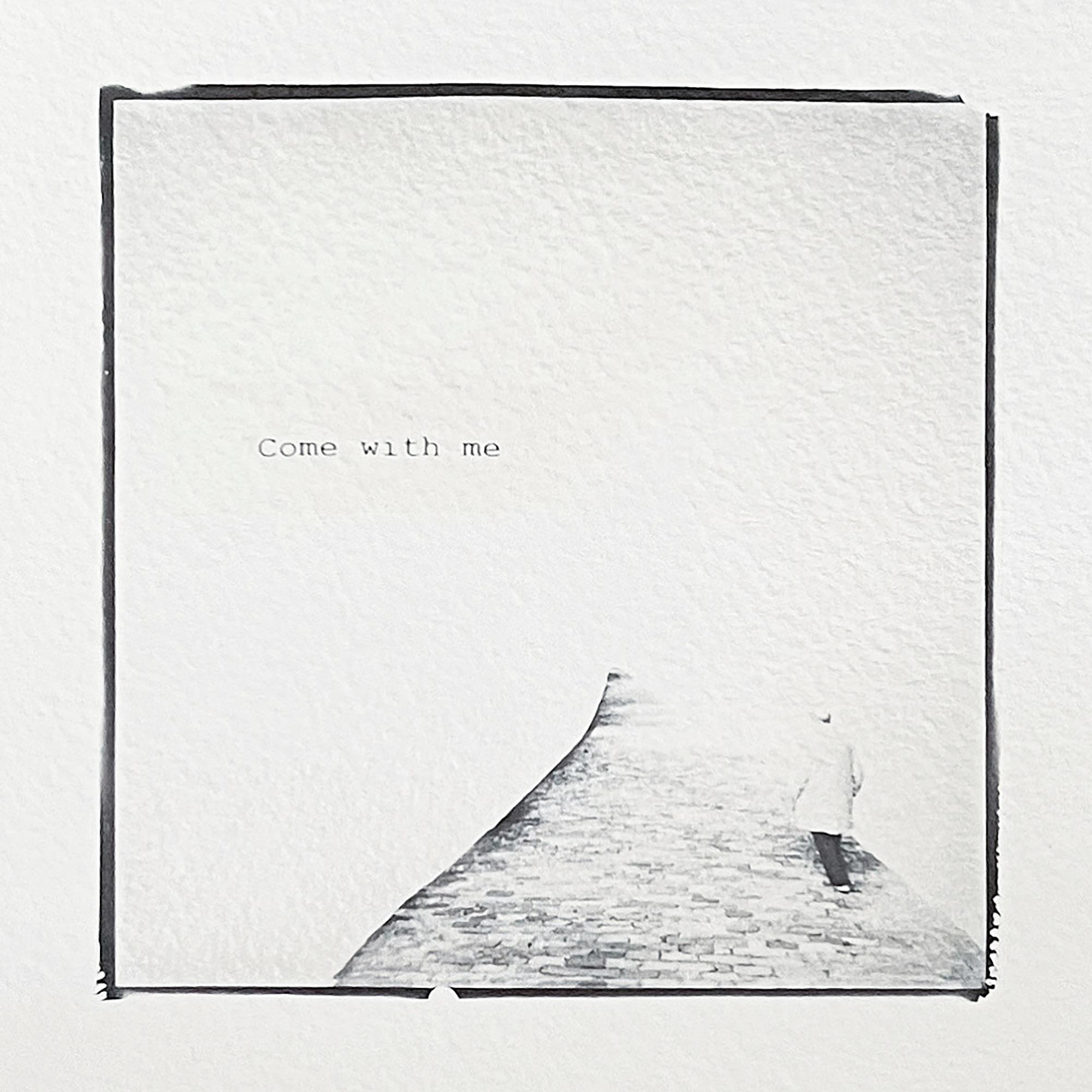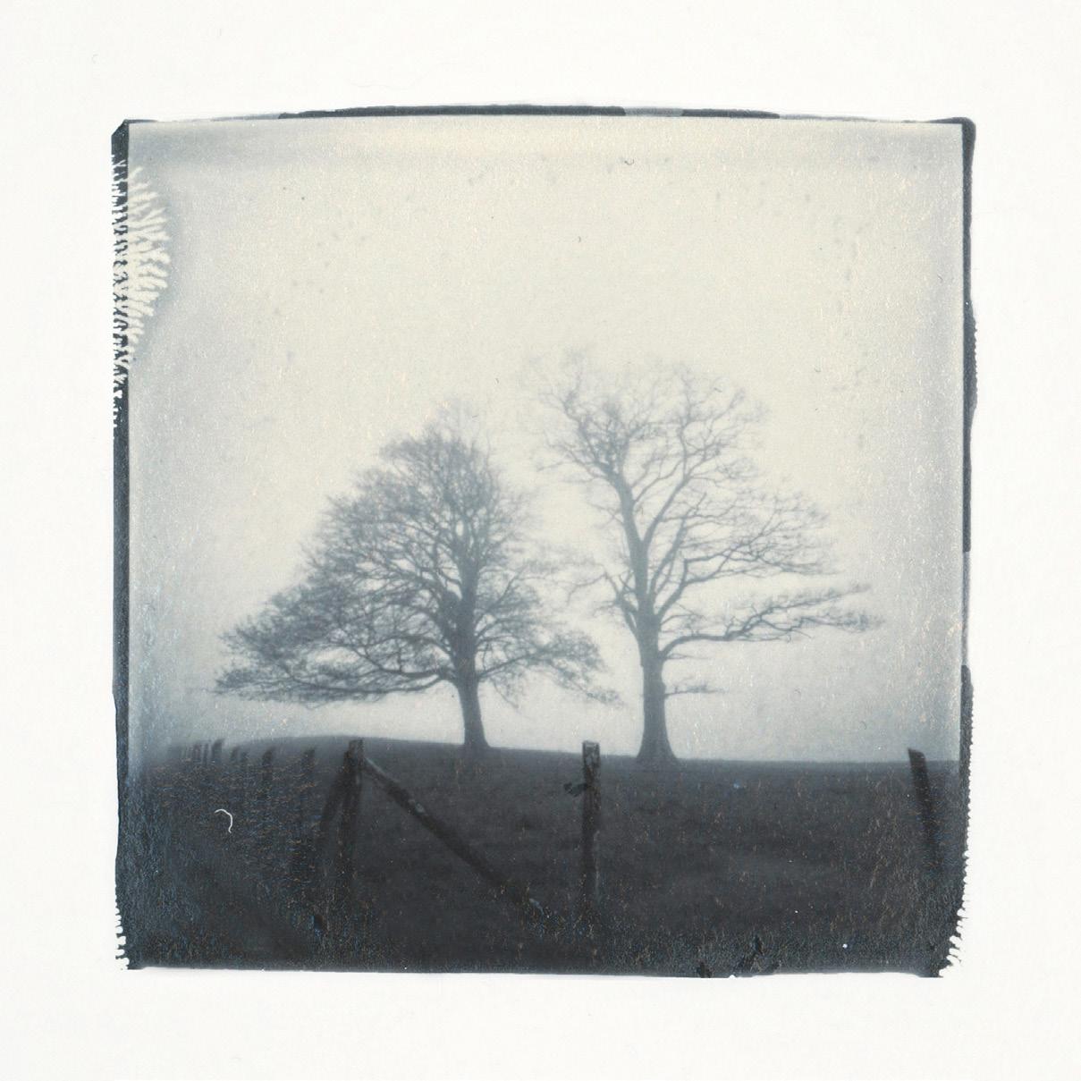 Through layered emulsions and hand-cut Polaroids, I also enact a union within the medium itself by joining disparate images, physical emulsions, gestures, and fragments into new, embodied wholes. The emulsion, once on a Polaroid, is now bound to a new medium. Each piece is a collage of relational energy: two trees reaching toward each other across a fogged field; a young figure conjuring connection; a figure in mourning under a wedding canopy.