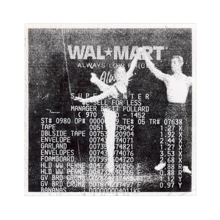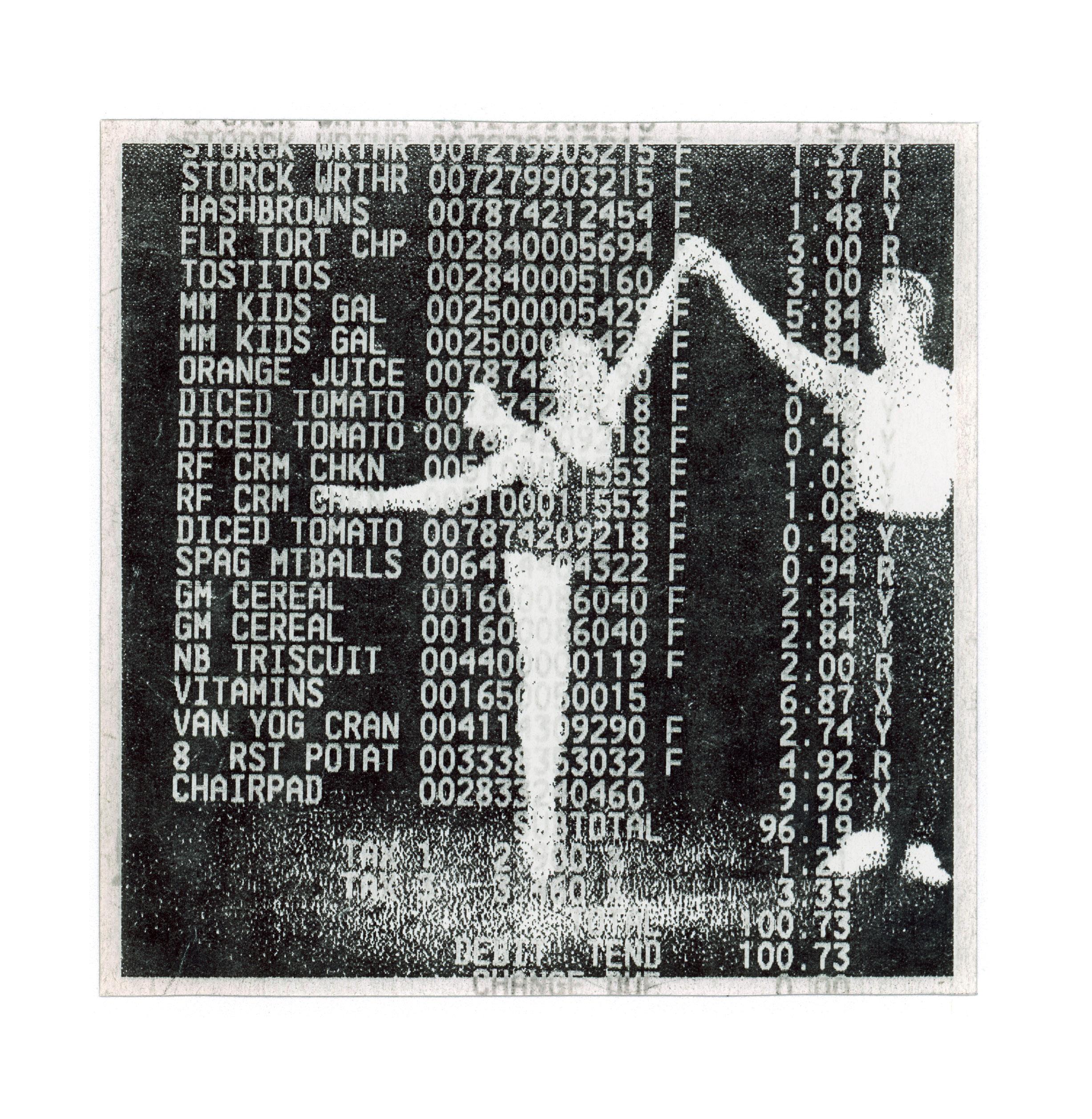 printed on receipts the ideas gain depth. It’s not a pristine canvas, it’s scraps of garbage. It’s not 50 megapixels, it’s barely enough dots to create an image. And showing through the video is every mundane purchase I’ve ever made: junk food, deodorant, postage stamps, diapers, and blue jeans — every penny accounted for in explicit detail. I often show my techniques as part of my videos. I create timelapse sequences that show the tedious process of
