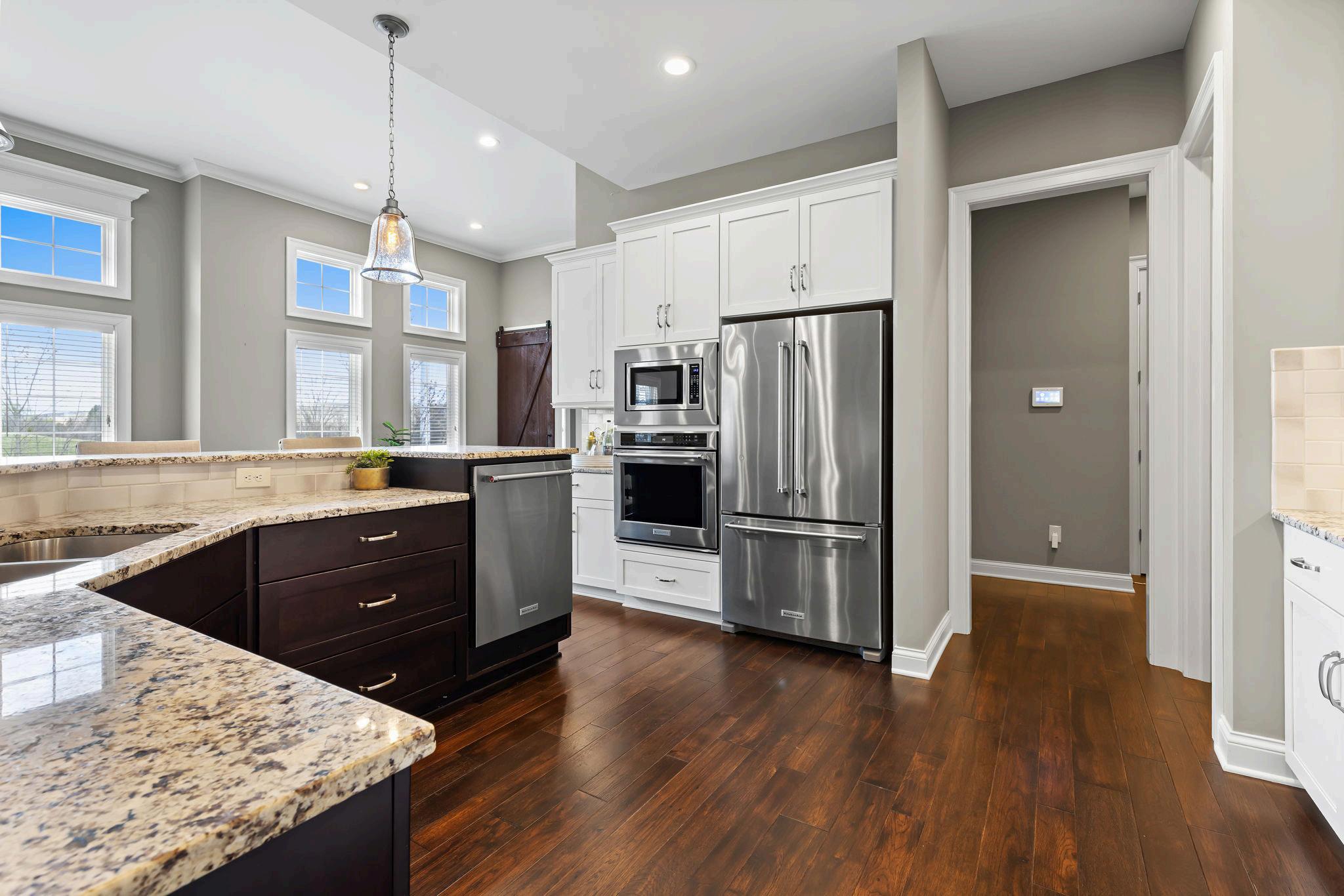 The heart of the home, this gourmet kitchen is a chef’s dream, featuring a spacious breakfast bar, gleaming granite countertops, & upgraded stainless steel appliances. Custom cabinetry provides ample storage, while the open layout ensures seamless interaction with the adjacent living & dining spaces. Whether preparing a casual meal or hosting a dinner party, this kitchen is designed for both function & beauty.