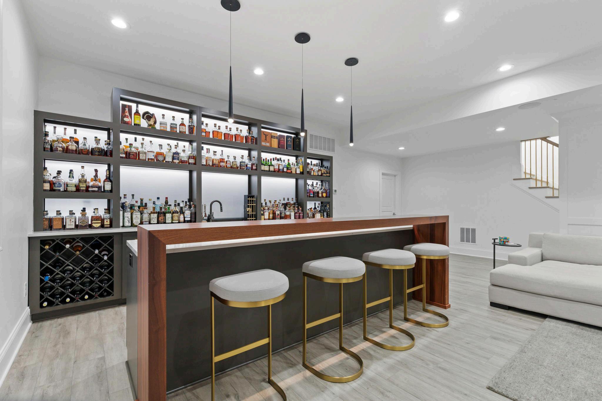 Custom wet bar in lower level w/2 beverage coolers, dishwasher and ice maker