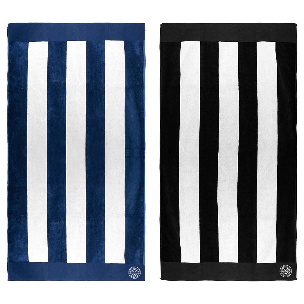 Deluxe striped jacquard beach towel made from 100% cotton and 500gsm velour one side and terry towelling on the other.