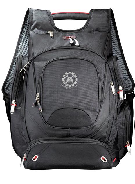 Computer backpack features a padded, lined, and dedicated compartment to protect your 17 inch laptop. Side zippered pockets. Mesh water bottle pocket. Airflow™ mesh padded back panel with trolley pass through. Padded and adjustable should straps, cable grab handle.