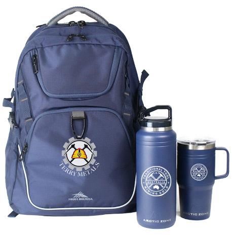 Ultimate FIFO travel backpack set, built tough for every journey. The premium High Sierra 4.0 Access Backpack offers protection for your tech and luggage. Rain cover and trolley sleeve with hidden RFID pocket. This travel pack includes a premium Arctic Zone drinkware set; 1L double walled stainless steel vacuumed insulated drink bottle and 590ml Eco-Friendly Titan Thermal HP® Mug which fits perfectly in car or truck cup holder.