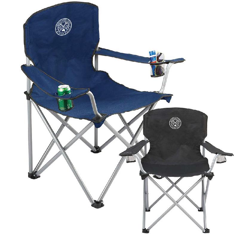 Extra wide strong folding chair with carry bag. Can hold up to 150kg weight. Sturdy steel frame and durable 600D fabric. XL chair includes 2 mesh cup holders.