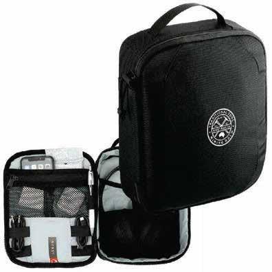 The very popular FIFO backpack built for every travel journey 17” padded laptop compartment with a safety hammock o ers extra protection for your devices. Premium metal carabineer for attaching accessories, trolley sleeve with RFID protection and handy in-built raincoat for protection. Side bottle pocket.