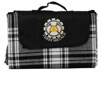 picnic accessory acrylic rug with PVC waterproof backing, velcro closure and carry handle.