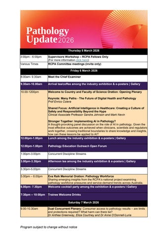 Pathology Update 2026 Overview Program Draft - Website by The RCPA - Issuu