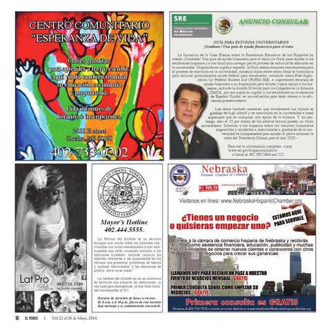 CENTRO COMUNITARIO “ESPERANZA DE VIDA” Clases gratuitas, para aprender a leer y escribir. Aquí podrá también terminar su educación secundaria y preparatoria. Pida informes de horarios e inscripciones. 2418 E street Omaha, NE 68108