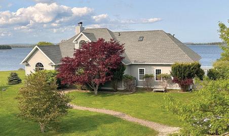 CONTEMPORARY TWOYEAR-OLD HOME with every modern convenience and feature imaginable. An incredibly livable home. Situated on 32.5 acres with 121 feet of waterfront on the LaHave River. Four bedrooms, 3.5 bathrooms, a 50-foot indoor lane pool and an open concept kitchen dining/living room all add up to 3318 square feet of living space. Placed on a hilltop, the house faces south with stunning views of the LaHave River winding around islands before opening up to the Atlantic Ocean. Straightforward and sensible planning went into the layout of this home. $1,999,000 CDN