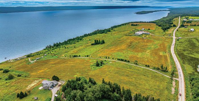 G E N U I N E R A R I T Y , t h e p r o p e r t y a t 85 Oak Wood Drive is located at the very end of a wooded road. Arrival is a captivating experience, with a south facing vista straight down the cove with Graves Island on the left, Lobster Point on the right and Tancook Island, framed perfectly on the horizon. On over an acre of land, with 311 feet of ocean frontage this 25-year-old home has a contemporary design with Cape Cod aesthetic. Landscaped to perfection, the lush lawns cascade down to a 65-foot-long wharf. Directly in front of the house is a reinforced rock sea wall along the shoreline tapering off to gorgeous sand as you head west along the beach past the wharf. $1,699,000. CDN