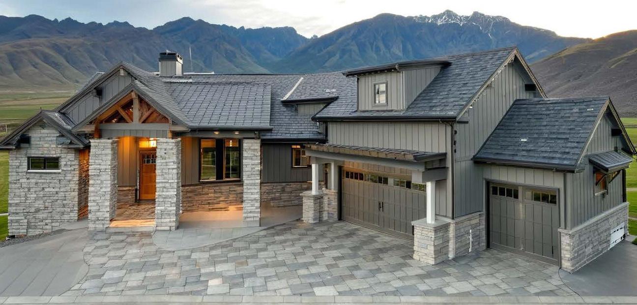 A custom mountain retreat resting on six private acres, capturing dramatic western mountain views