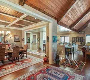 At the heart of this one-of-a-kind residence is a dramatic, double-sided stone fireplace— an architectural centerpiece that anchors the home and defines the flow between the elegant, light-filled living area and the dining and kitchen spaces.