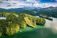 buffer, winter views of the mountains, small waterfall located at base of property. RV’s are generally not permitted unless a house is under construction. Property borders National Forest for hiking, hunting & much more. Protective Covenants & Restrictions apply, 2000 SF for minimum house build, 500 SF for minimum for guest house build. Public boat launch just across the lake. WATERFRONT LOT W/ YEAR-ROUND VIEWS of the mountains in an upscale community. Walking distance to WCU. Dream of fishing, paddling or tubing from your own backyard! Have coffee w/ nature in the morning from your deck overlooking the Tuck! Nearby are lakes for boating, trails for hiking, colleges for both cultural & sporting events.