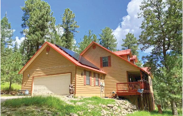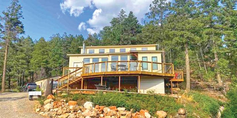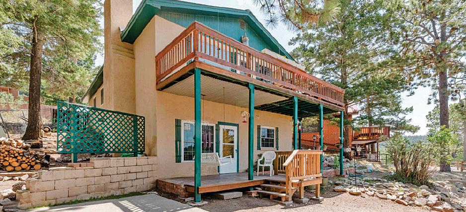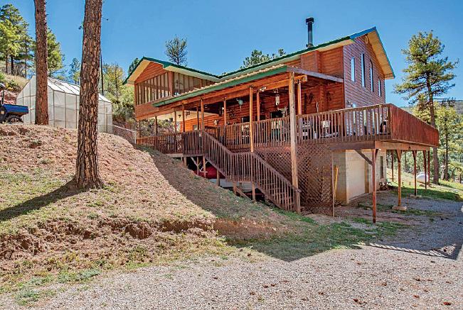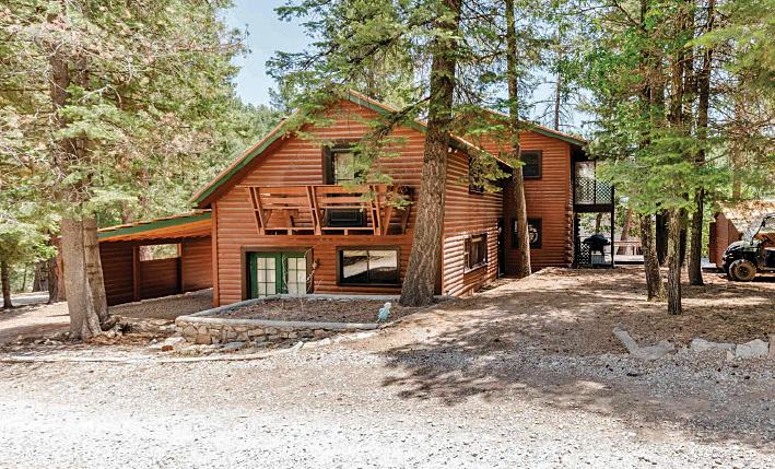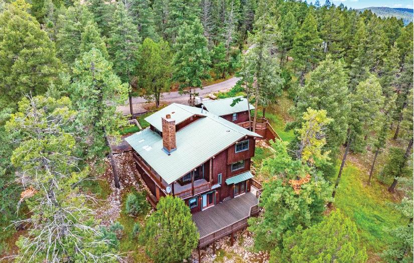 A TRUE MOUNTAIN RETREAT in coveted Pierce Canyon off Sun Spot Highway, this multi-level cabin blends Swiss Alps charm with modern flair. Open and covered decks offer stunning year-round views of wildlife and the mountainside. Inside, enjoy a welcoming living area, updated kitchen, and the first of three bedrooms with 2.25 baths. The primary suite features a private balcony and full bath, while the third bedroom and another full bath sit on the top level. Bonus attic space is ideal for a media room, playroom, or casual hangout. Own 4.034 acres of paradise near Cloudcroft. MLS# 171445. $545,000 • See Skip.