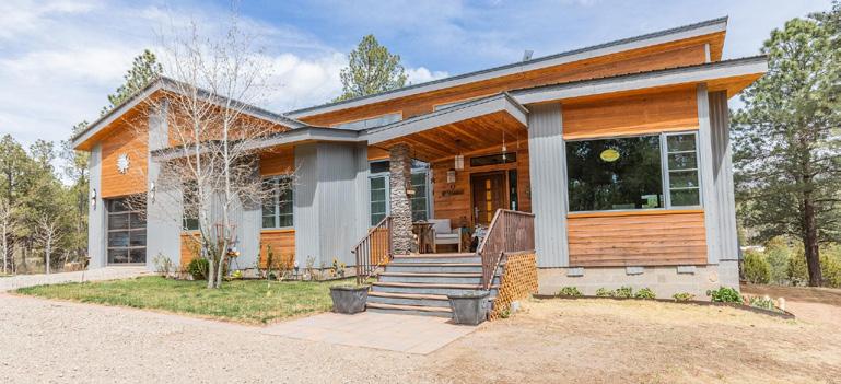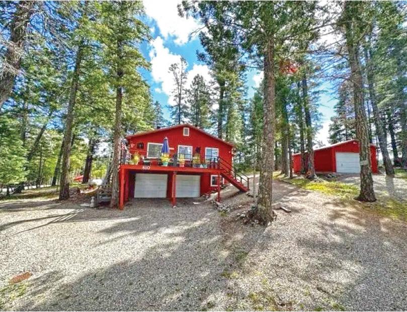Charming Single-Level custom home on 0.284 acres in Cloudcroft’s Woodlands subdivision. Corner lot offers dual off-road access and lots of parking, including a wide paved RV-friendly driveway and double garage on Woodlands Way. Hardwood floors, wood accents, vaulted ceilings, and low-maintenance Hardie® plank siding with a copper-tone metal roof. RV hookup (50-amp) on the north side. Heated workshop-storage building plus carport. Layout features pocket doors separating two bedrooms and a bath from the living area. Large windows provide passive solar warmth, natural light, and views of aspens and wildlife. Roomy decks and flat terrain complete the picture. #170228. $520,000.