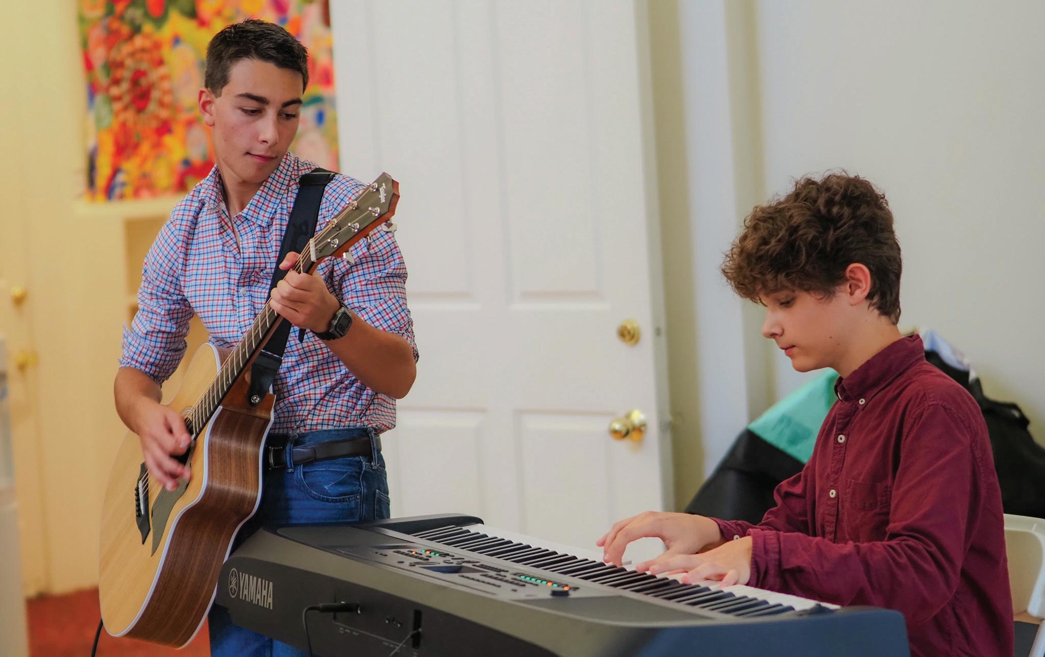 Terrific music was also on deck. As in past years, a four-piece bluegrass band provided a lively soundtrack to reflect the carefree vibe of the occasion. There was also a new musical performance; eighth graders Ellis Finkel (guitar and vocals) and Alex Doyle (piano) showed off their skills for the impressed guests.