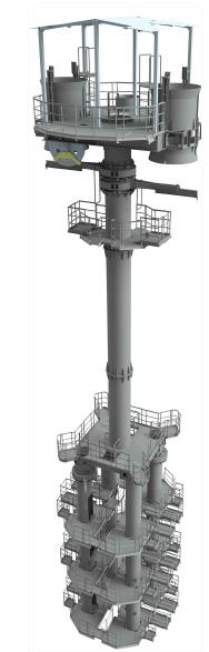 by client) in close cooperation with Redpath Deilmann has designed the hoisting system as well as shaft steel. The shafts are 8m in finished internal diameter. The skip shaft is 725m deep. The cage shaft is 697m deep. The total weight of steelwork for the skip shaft is around 1400 tons and 580 tons for the cage shaft. Redpath Deilmann has 110 workers and 21 engineers directly involved in this installation at both shafts.