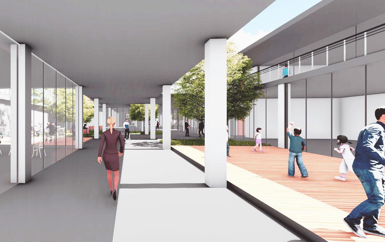 Letting the overpass go through the building, making it more inviting and attracting to people.