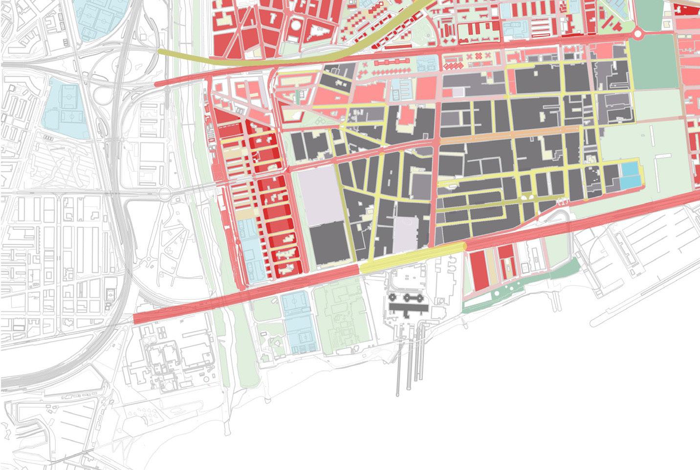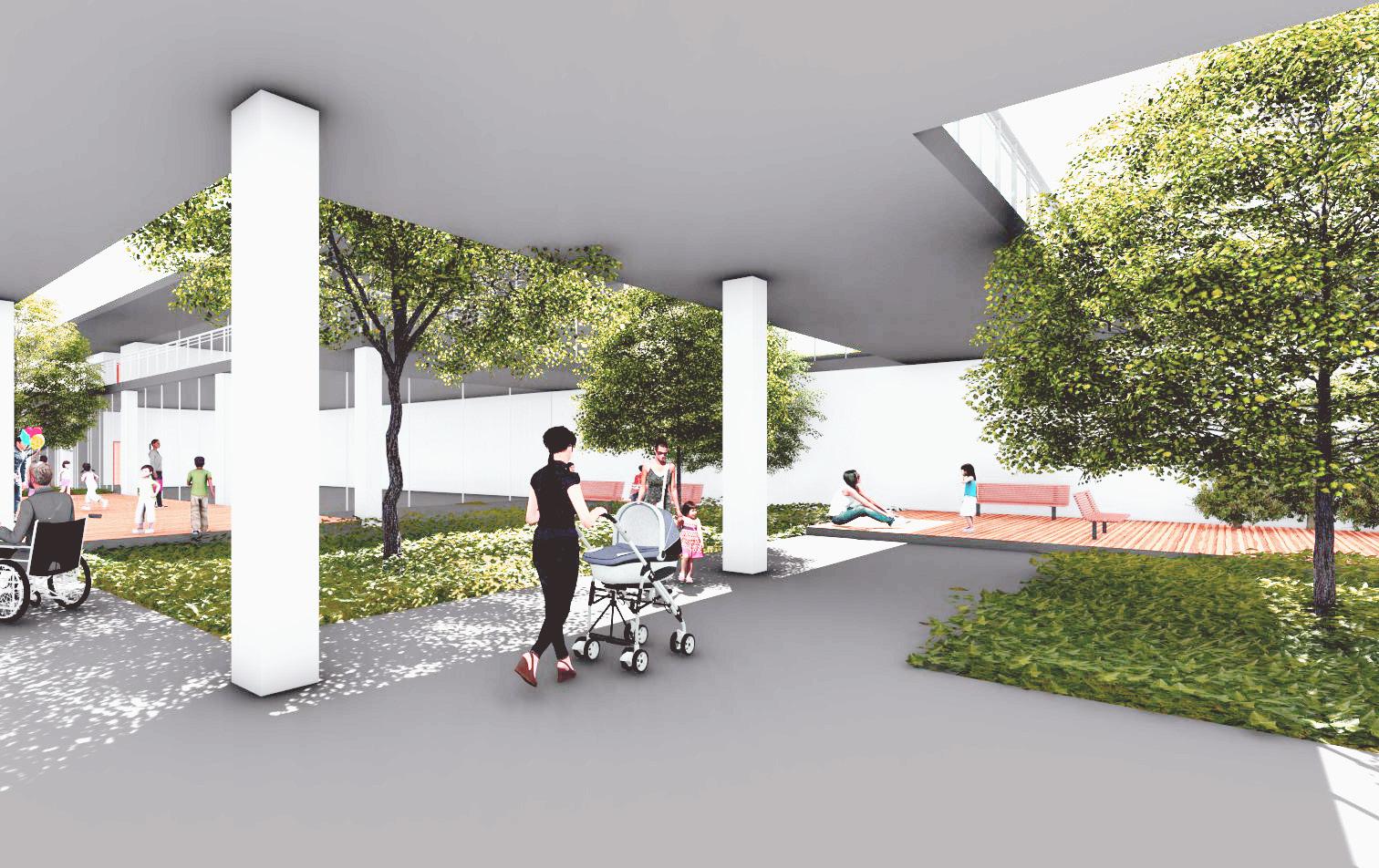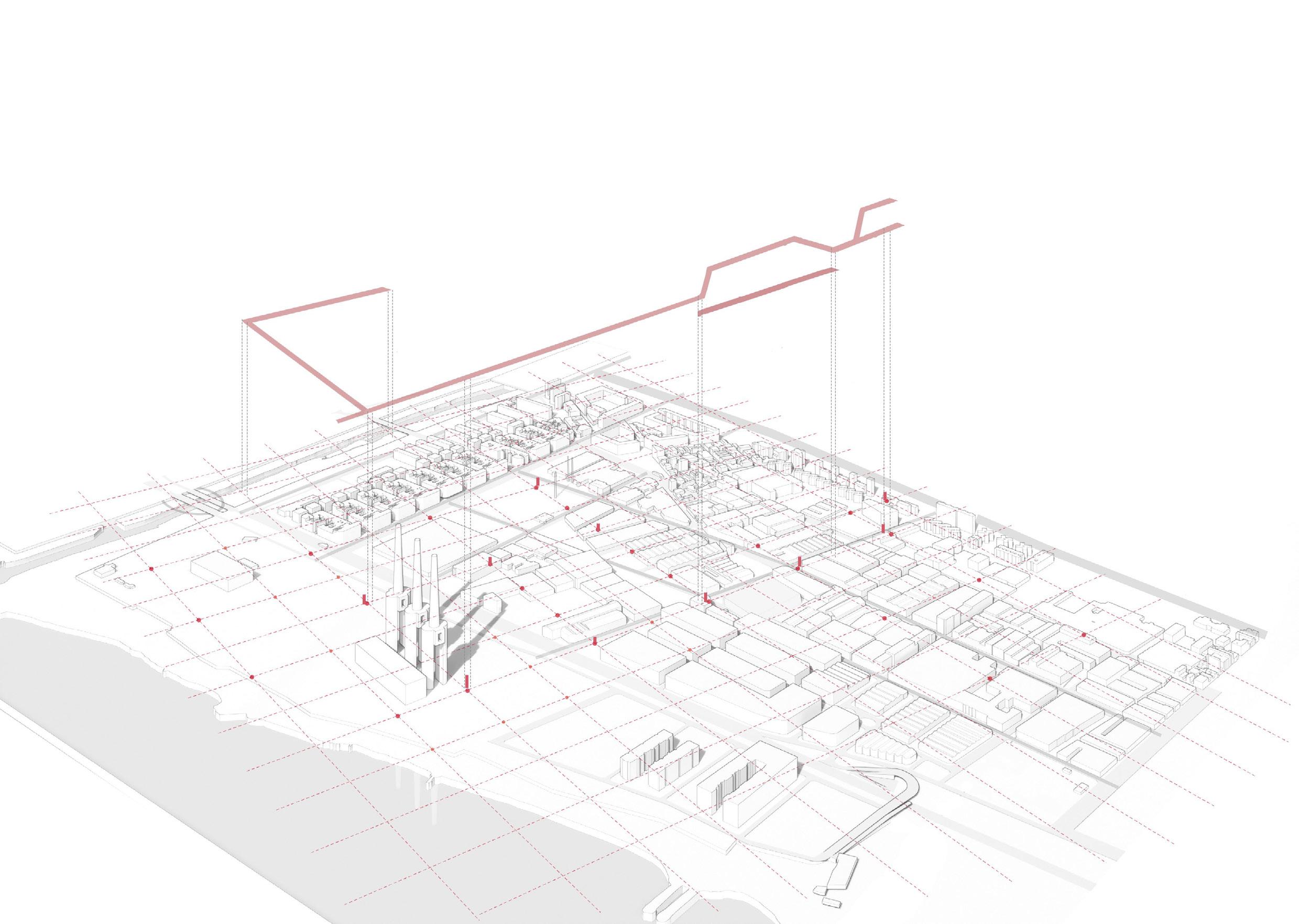 University - Group project several points that follow the famous grid of Barcelona. Moreover, these access points to the bridge act as flexible urban installations that people could use for different activities. The main goal of this project is the renovation of the old factory and turning industrial spaces more livable.