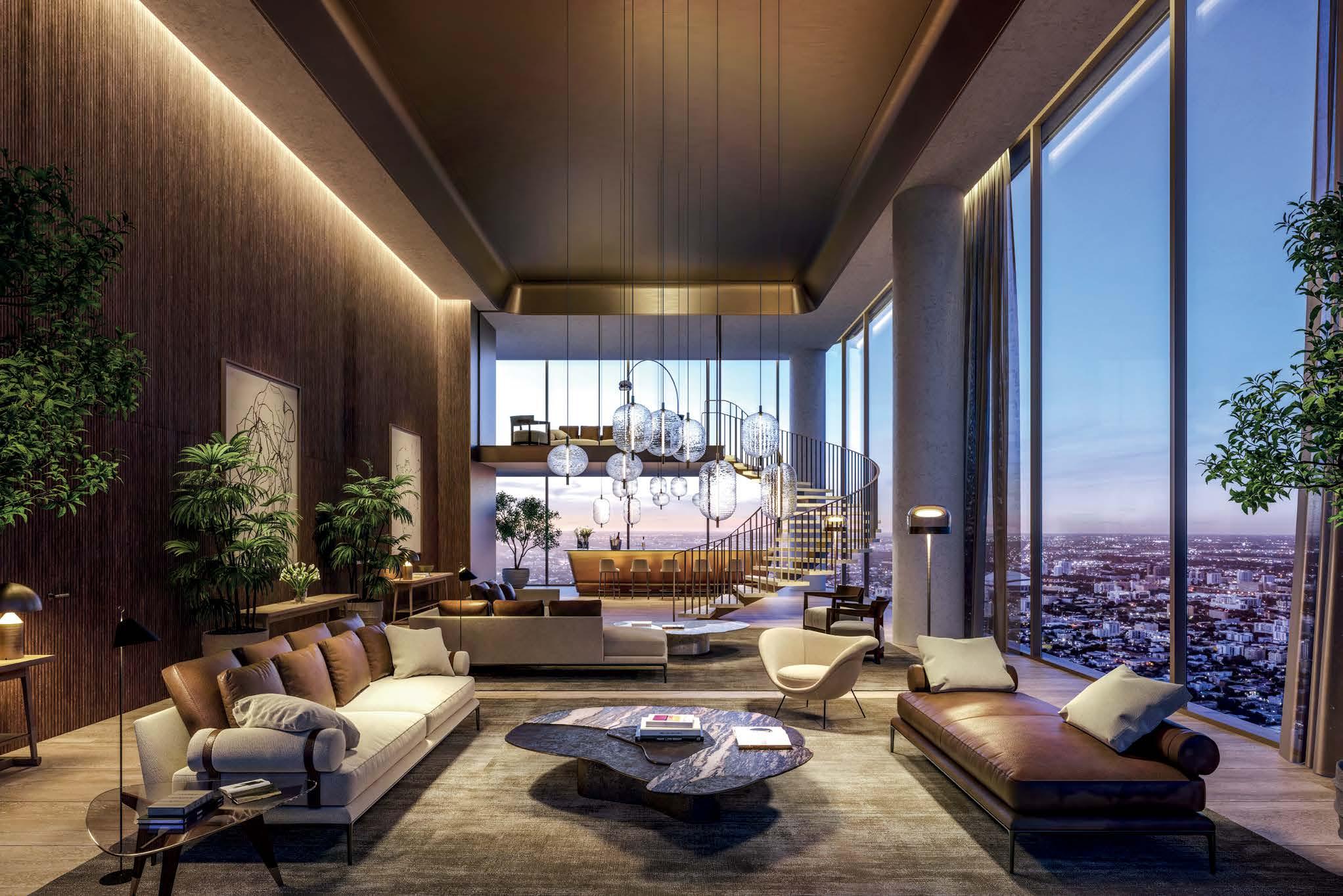 We dedicated more than 80,000 square feet of the property to amenities, including many on the top floors of the building, more than 850 feet in the air. We wanted to create spaces and a lifestyle that are exhilarating and truly luxurious both inside the residences and out. Artist’s conceptual rendering. See disclaimer on back cover.