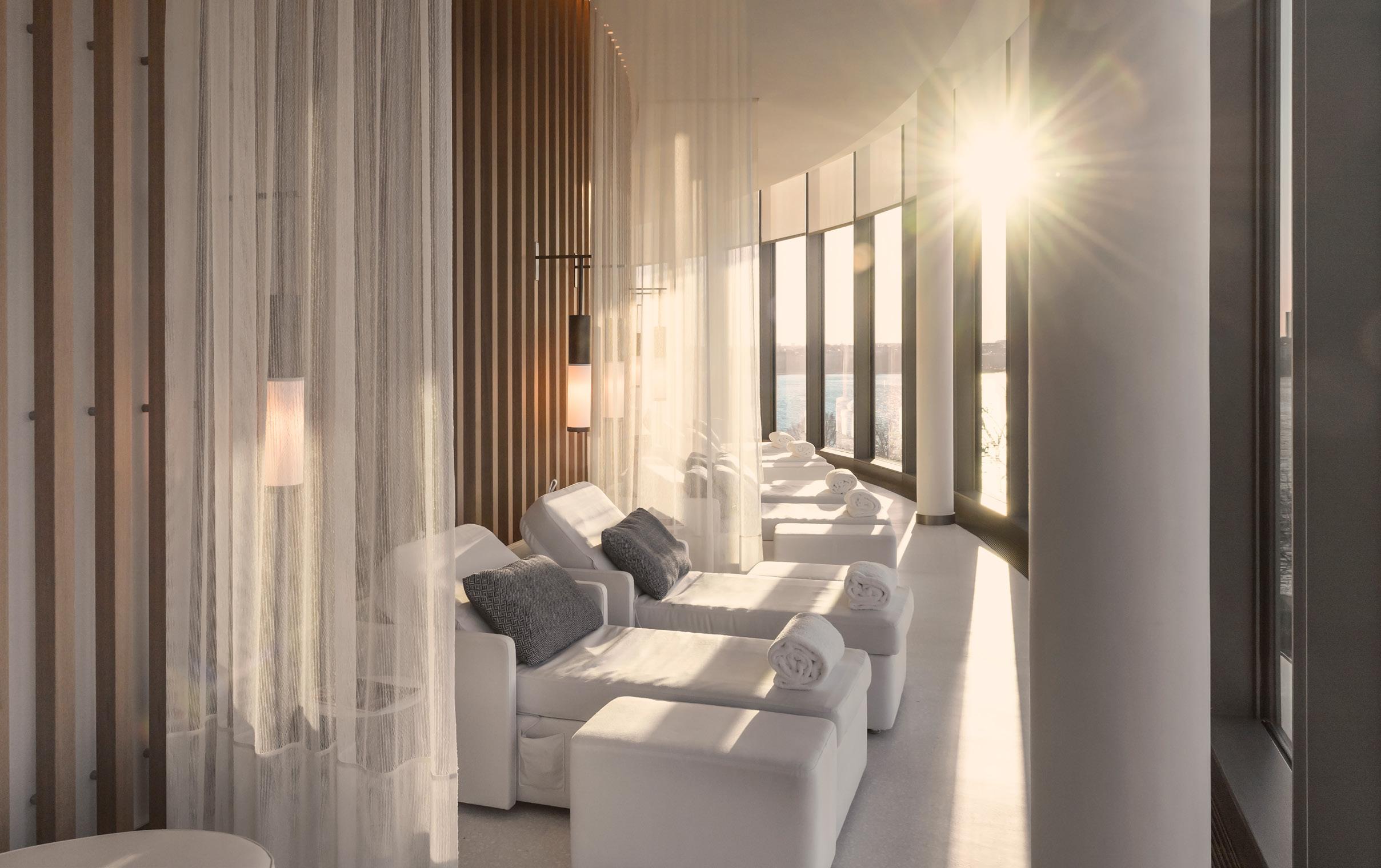 There’s also a sauna, steam and space for a massage, should you choose to have one here. But you could pick anywhere, including the island’s serene yoga area (a perfect spot to watch sunrise too).