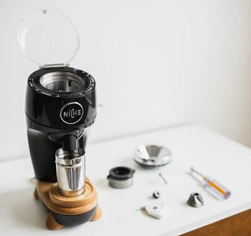 The very first thing you notice about the Niche Zero Coffee Grinder is its elegant design, this particularly stands out in the White model with the aluminium body contrasting nicely with the genuine oak detailing for a modern finish. We all know that looks aren’t everything though but that’s not an issue with this beauty, the Niche Zero is a single dosing coffee grinder, constructed with premium 63mm conical burrs. The patented, straight through design provides a zero-grind retention, ensuring all the flavour ends up right in your cup, there is a dial that can be adjusted for a precise grind setting for your brewing style.