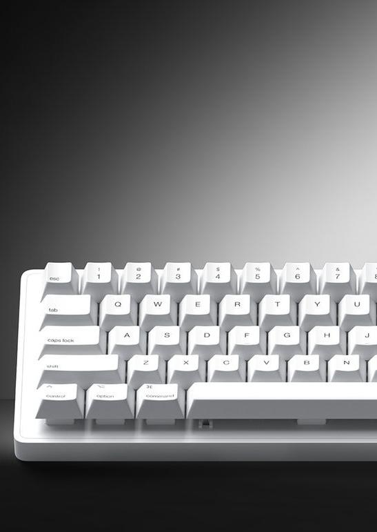 The aluminium case acts as a firm base, and the detachable USB C cable tucks away neatly. The compact layout frees up desk space and the pure white aesthetic makes the keyboard pop against any background, it does get grubby though so to keep the crisp, bright look you will need to clean it up from time to time.