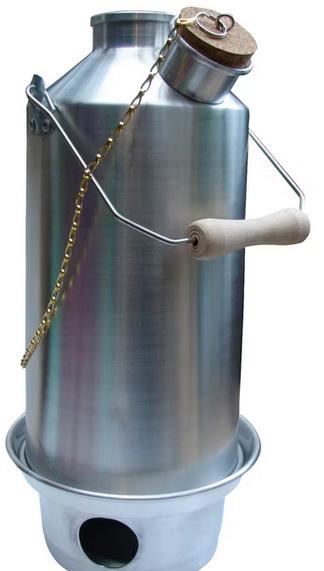 This thing then, is a god-send and I can’t believe I’ve never found it before. Quite simply you pour the water in through the nozzle where the cork resides, start up a fire using paper and kindling in the base of the kettle and let it do its thing. The chimney heats the water very effectively and in no time you have up to 2 ½ pints of hot water. Oh, don’t ever leave the cork in as it’s boiling! If the fire starts to die down, you can add more fuel in the top (twigs, more kindling, sensitive documents…). Once boiled, you have a handle and the chain the cork is attached to allowing you to safely pour without risk of scalding yourself. The fire base detaches allowing you to easily clean it out of debris once done.