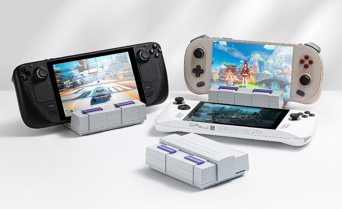 The shell is inspired by the 1991 SNES design and will certainly appeal to those older gamers who have fond memories of the SNES or for those that really like going retro with their set up. It’s like a little ‘mini-me’ of the SNES and is actually really aesthetically pleasing! But, does it do what it’s supposed to do? Well, first of all, let’s talk about the docking itself. The cover clicks back in to 4 different settings allowing you to dock pretty much any hand-held no matter how chunky or slim – you can even slot your mobile phone in there securely. It also supports Steam Decks, AYANEO, Switch, Switch Oled and ROG Ally amongst others so should be suitable for whatever your device is. There is good ventilation right behind where your device docks so no problem of over-heating and the general open-ness of the docking station helps with this too.
