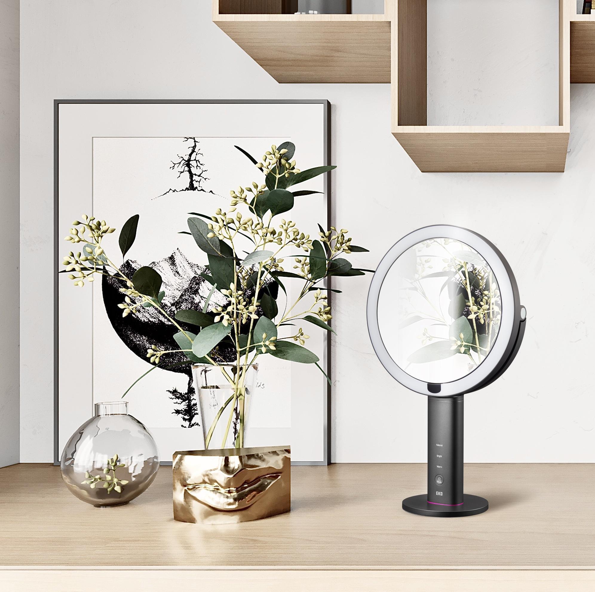 Once you get used to intense detail that a light up make up mirror provides you will not go back to using a regular mirror to get ready in the mornings. The iMira Pro Ultra Clear goes even further, with both 1x and 5x magnification which means there isn’t a single stray hair or rogue bit of make up that goes unnoticed. This free-standing bathroom mirror comes with three light settings that are easily adjustable via touch control, letting you get the best light for the time of day and your needs. The Natural light simulates natural sunlight, which is ideal for creating daytime looks, the Bright setting delivers a cool bright light for working on finer details and the Warm light helps you perfect an even look with warm indoor lighting. The 20cm mirror is double sided, with 1x magnification on one side and 5x magnification on the other, it just flips over within the frame of the mirror, so the light remains in the same position with the same setting. The lighting is 1100 lux and has a colour rending index (CRI) of 96, the brightness is also adjustable with a satisfying scroll up or down of the touch panel. There is a hand auto on/off sensor that detects when you are in front of the mirror, lighting up automatically as your face approaches and then turning off after 12 seconds of moving away. The mirror is rechargeable via USB, one charge will last up to four hours of continuous use or around 3-4 weeks of average daily use. The Pro Ultra Clear has a durable body with a fingerprint resistant finish, a surface friendly bottom that holds the mirror steady when you flip it over, the auto switch on is particularly useful when you have a hand full of brushes and makeup.