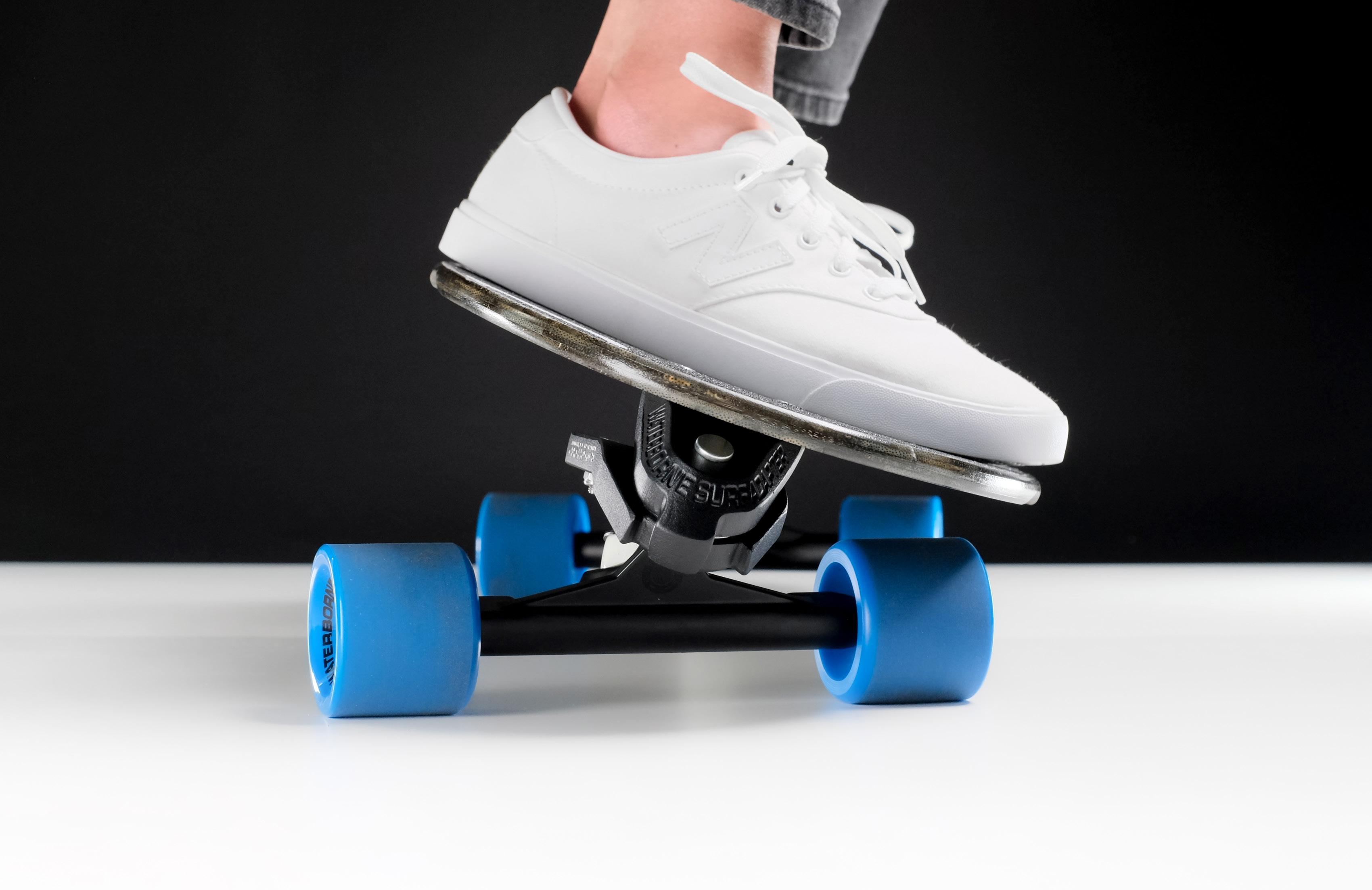Anyway, these handy little pair of adapters basically help to give you a smoother experience due to the urethane bushings that help to dampen the vibrations. The advantage of urethane is that, unlike rubber, it lasts a lot longer and so does a much better job of soaking up all those vibrations and keeping everything in alignment so that the rest of the components can do their job. However, this product is more about the two components combined. The front wheels of the skateboard have the Surf Adaptor and trail a leading pivot, just like the front wheels of a car. The Rail Adaptor on the rear wheels stabilises the turning and so makes the rear wheels all about grip. Overall, this improves the handling of your board and allows you to focus on what you’re doing with more responsiveness as a result, even over rough surfaces.