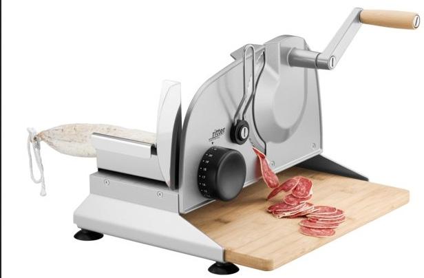 For more information on the Ritter Hand-operated food slicer piatto5 click here 55 P ros woNDerfully eNg IN eereD sPare bla Des ava Ilable DI reCT from r ITT er Cu TTINg u P To 20mm mea Ns you Ca N sl ICe every T h INg from brea D To wafer T h IN ham sTa INless sT eel makes IT easy To keeP lea N