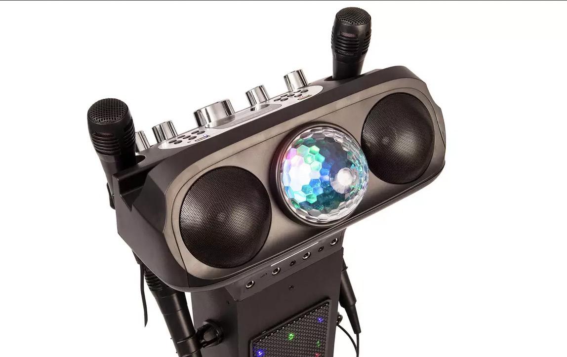 The Easy Karaoke EKS468BT Smart Bluetooth® professional family karaoke party system is the ideal present this Xmas, suitable for karaoke at home or for a party with its 100W output. With 6 built in speakers multiple flashing LED lights and disco ball it is an all-inone party system, including four microphones and holders. Incorporated is a universal phone/tablet cradle with charger allowing all the family access to the smart karaoke app for access to thousands of free HD quality karaoke songs through the QR code. The fact that it comes with four microphones really does make this a monster of a machine. Not only that but It's fully portable weighing only 8kg and can be powered by USB or battery (battery life four hours). The microphone cable length is two metres allowing you to strut your stuff on both the stage and your living room.