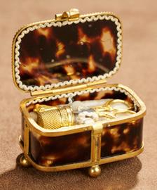 19. French Miniature Tortoise Shell Sewing Necessaire with Rich Gilt Accessories
