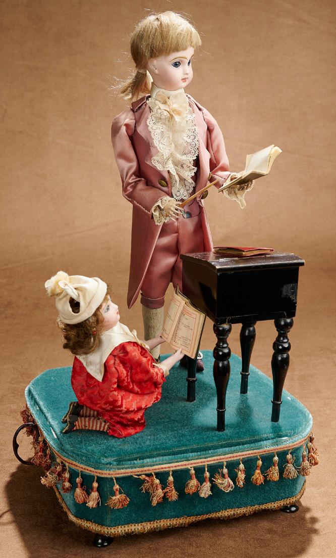 2. Comments: Sonneberg, circa 1880, the dolls were created to compete with the popular French market which influenced their appearance and construction. Value Points: especially charming as a pair, wearing antique costumes of Marquis and Marquise, original mohair wigs. $600/800