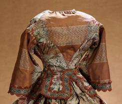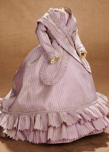 Condition: generally excellent. Marks: 2. Comments: Gaultier, with deposed Gesland body, circa 1875. Value Points: rare body with bisque limbs, lovely antique silk costume. $2400/2800