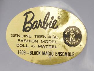 Mattel, 1959. Early (R) version of label for coat, costume was only available in 1959 and includes the rare compact. $1500/2000