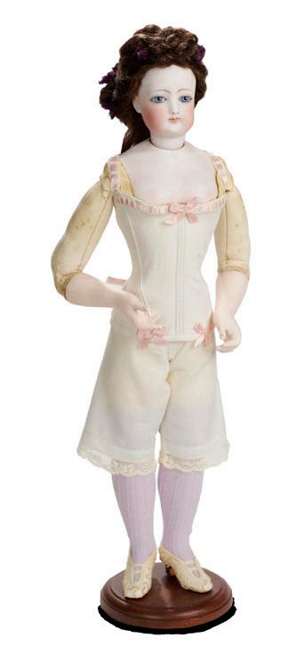 11. German Bisque Lady Doll with Sculpted Bodice and Glass Eyes