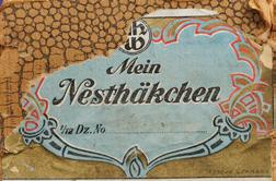 7” (18 cm.) x 9” 4 ½” doll. Presented with original box with illustrated lid is a cloth bound hard cover book with applique label “The Jingle of a Jap” relating the story of a little paper-mache ningyo who falls hopelessly in love with a blonde-haired wax doll. Written by Clara Bell Thurston, published by Caldwell, Boston, 1906, the book is enhanced by the presence of a small paper mache ningyo doll tied on the front cover of the book. Book and doll excellent, box has some wear and spotting. $300/400